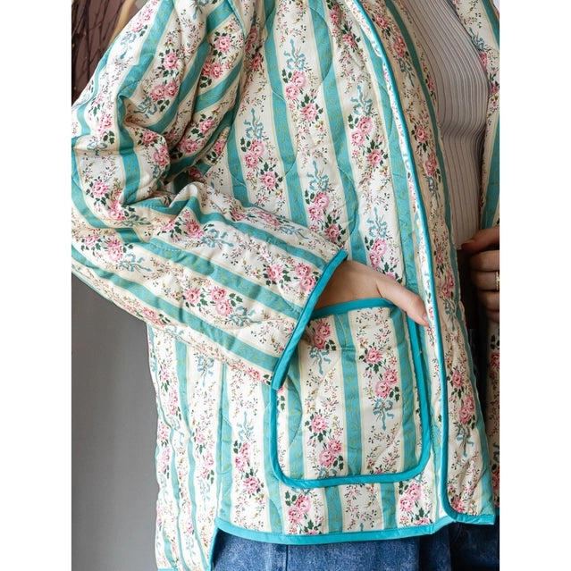 Veveret Quilted Stripe Flower Open Jacket